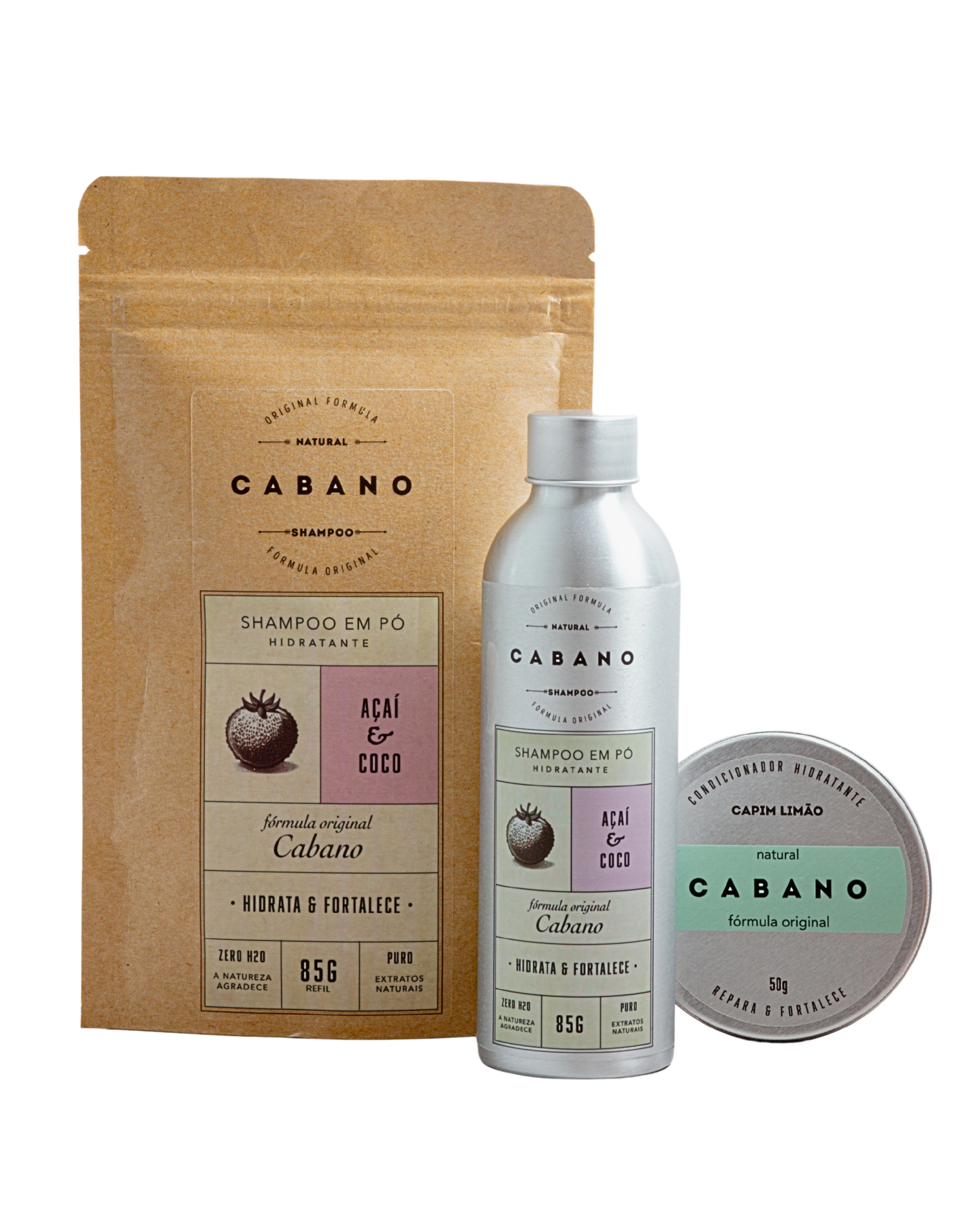 Shampoo com leite de coco em pó + açaí para hidratar, fortalecer e devolver maleabilidade a cabelos secos.